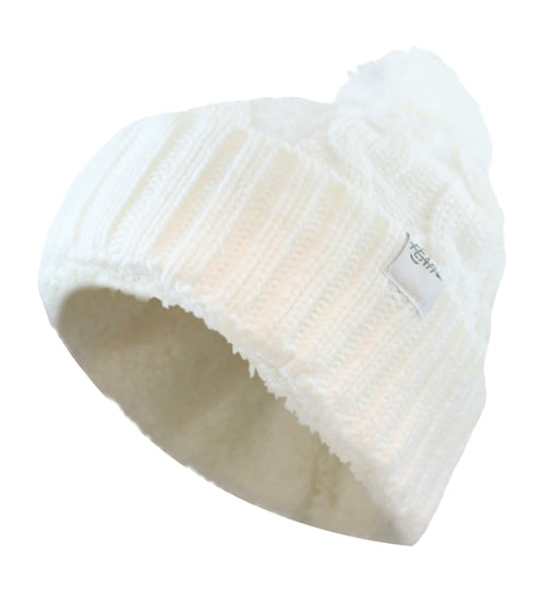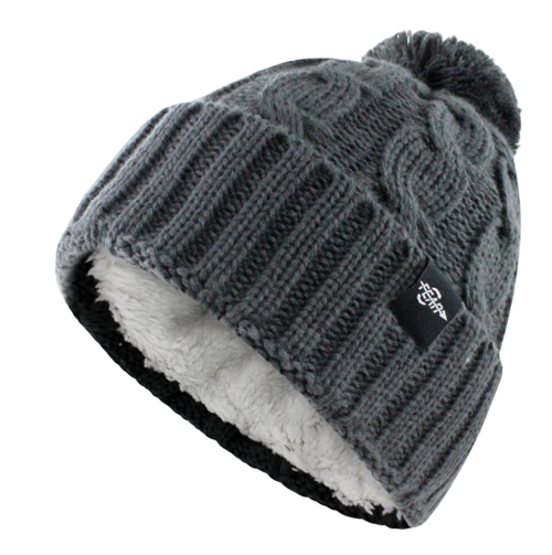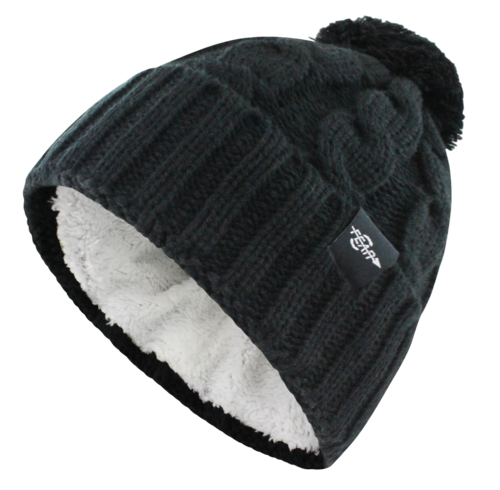 Varmeste plysjforede strikkelue med oppbrett og dusk for kvinner – vinterlue som holder deg god og varm.